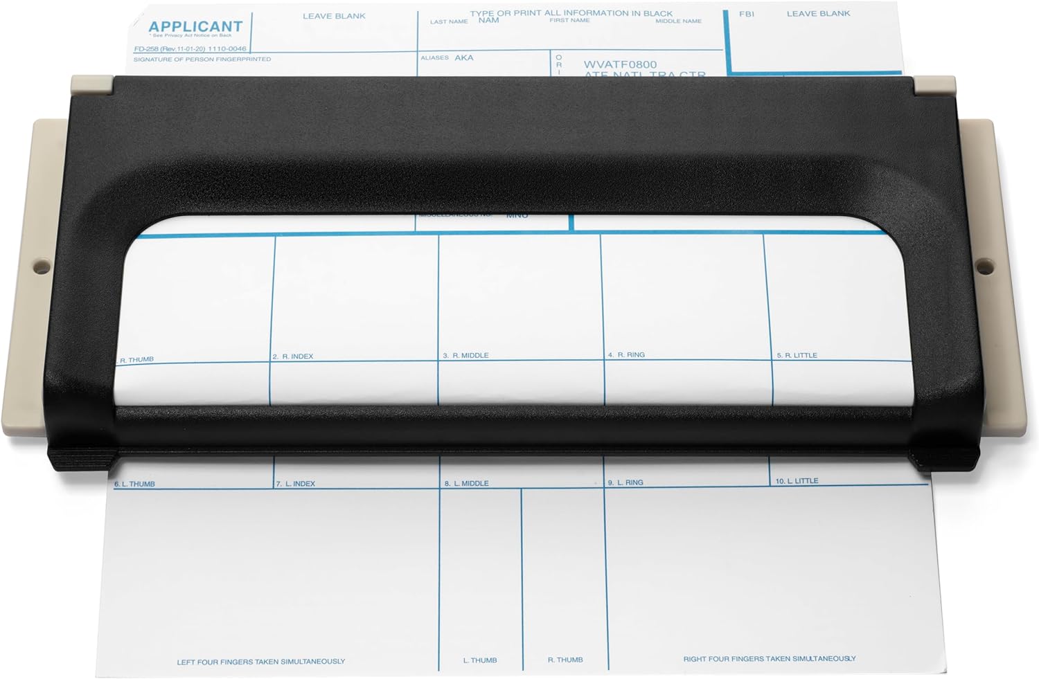 Say goodbye to messy, smudged fingerprints. Designed to hold standard A4 size or other sized cards, this durable holder features a rigid arm mechanism that locks your card firmly in place. This prevents smudging and ensures you get a clear, high-quality print every time. You can attach it to a tabletop with screws or use the attached rubber feet to hold it in place.