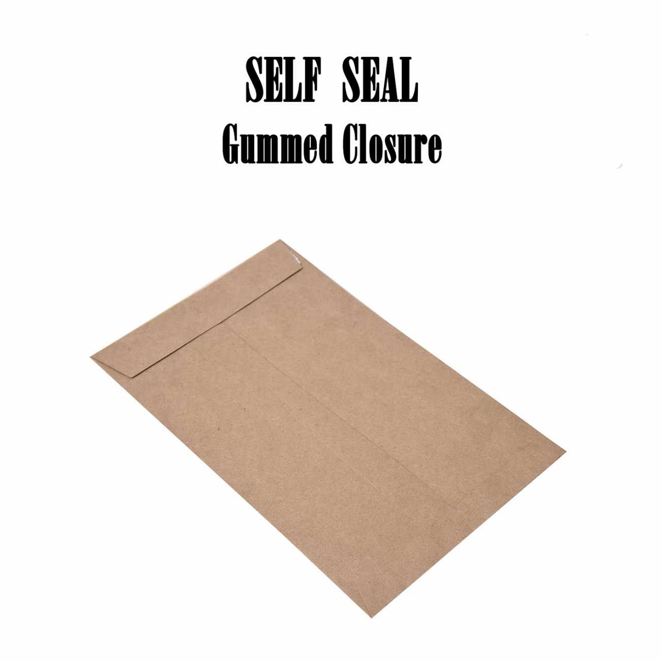 - Kraft Brown Envelopes feature a Self Seal Gummed Closure