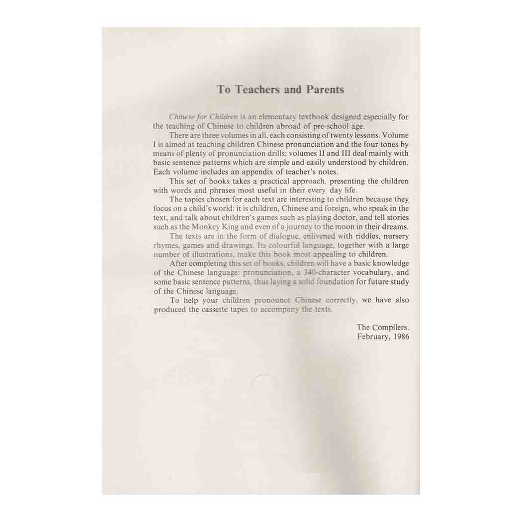 Learn Chinese for Children, in three volumes and accompanied by cassette tapes, is an elementary textbook designed especially for pre-school age children abroad to learn Chinese. This set of books will enable children to acquire a basic knowledge of the Chinese language (pronunciation, a 340-character vocabulary and some basic sentence patterns), and thus prepare them for future study of the Chinese language.