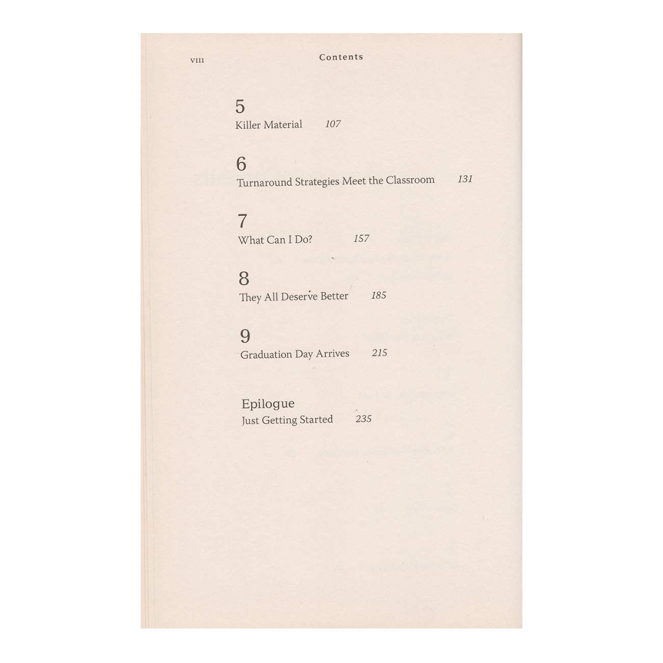 Poizner writes, “Often I came to ask myself one question: What exactly are you doing here? As it turns out, I was receiving one hell of an education.” Mt Pleasant is ultimately a success story, as Poizner wins Rookie Teacher of the Year honors and, more important, ensures that all his students graduate.