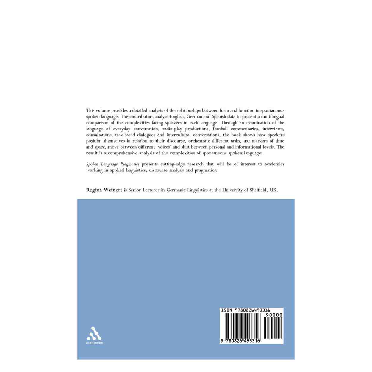 This volume provides a detailed analysis of the relationships between form and function in spontaneous spoken language. The contributors analyze English, German and Spanish data to present a multilingual perspective on the complexities facing speakers in a variety of contexts. Through an examination of the language of everyday conversation, interviews, consultations, task-based dialogues, football commentaries, radio-play productions and intercultural conversations, the book demonstrates the effect of informational, discourse-external and personal factors on form and shows how speakers position themselves in relation to their discourse, orchestrate different tasks, move between different voices, and negotiate meaning. The result is a comprehensive analysis of the multiple layers of spontaneous spoken language. Spoken Language Pragmatics presents research that will be of interest to academics working in linguistics, applied linguistics, discourse analysis and pragmatics.