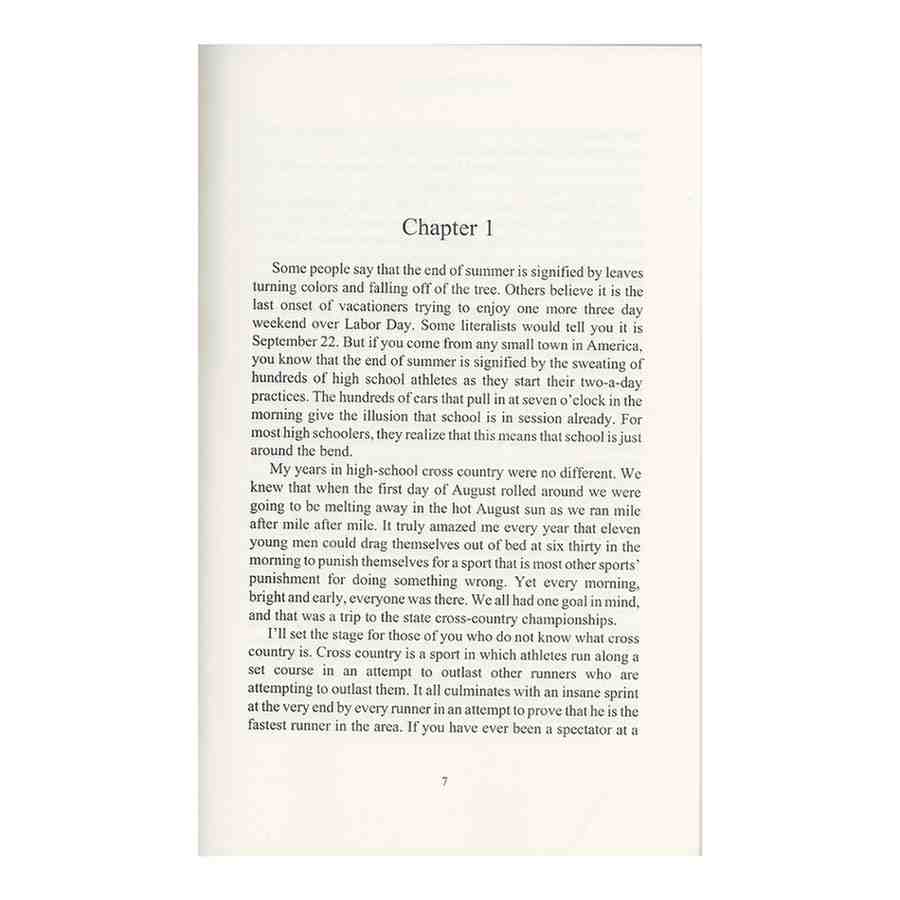 John is a typical senior athlete who loves running and competing in cross-country. As a captain of the high school cross-country team, John finds out that there are quite a large number of problems he has to deal with. His ultimate goal is to see his small high school cross-country team make it all the way to the state cross-country championships. However, along the way he has to deal with injuries, conflicts between team members, legal technicalities, and ultimately a showdown with the biggest schools in the state in a classic match-up of David versus Goliath. And if that is not enough, he challenges the varsity football team to a contest that will settle the argument once and for which sport is tougher, cross-country or football?